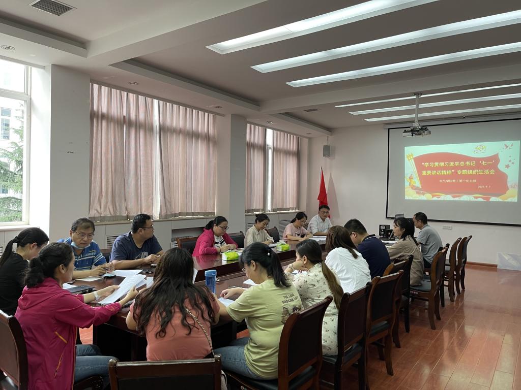 教工一支部于2021年9月7日下午,在2#B313召开了“学习贯彻习近平总书记‘七一’重要讲话精神”专题组织生活会,会议由支部书记祁林主持。校纪委综合室副主任李阳到会监督指导。支部于会议前组织开展了谈心谈话,包括支委委员之间相互谈话、每位支委委员和所属系部党员同志谈话、每位党员之间相互谈话等方面。2021年09月06日,祁林同志带领教工党员进行了“习近平总书记‘七一’重要讲话精神”的党课学习,他分“一个伟大的党”、“一个奋进的党”、“一个自强的党”、“一个充满活力的党”四个模块进行了介绍,使教工党员对我们党的引领作用有了更加深刻的感悟。组织生活会上,全体党员结合自己的学习情况和工作情况进行了主题发言,开展了自我批评。各位老师畅所欲言,对照学习要求进行了认真检视,围绕日常学习抓的牢不牢,学习效果好不好,与日常工作是否紧密结合等方面查找自身不足。在批评环节,支部党员相互指出对方在学习工作过程中存在的问题,效果明显,从而进一步提高了支部的凝聚力。