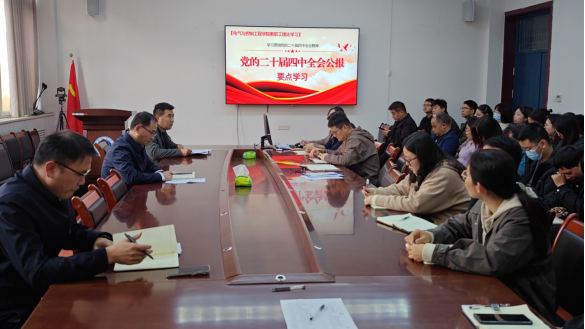 (通讯员 丁华斌)为深入学习领会党的二十届四中全会精神,切实把思想和行动统一到党中央决策部署上来,11月4日下午,​beats365唯一官网组织全体教职工召开专题学习会,集中学习党的二十届四中全会精神。​公司党委书记杜留记主持会议并作领学讲话,全体教职工参加学习。