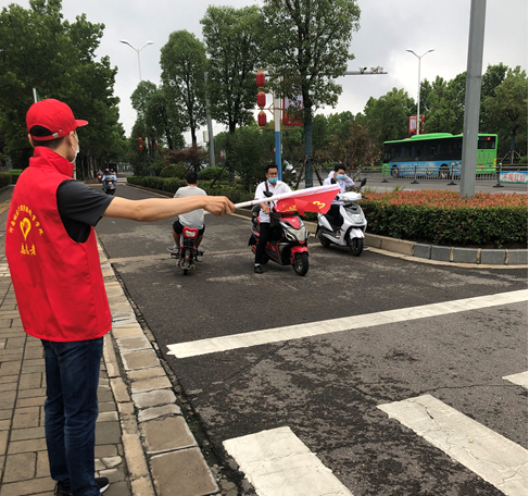(通讯员 申慧方)为着眼创建全国文明城市和文明校园的常态长效,发挥省级文明校园标兵在文明城市创建中的示范带头作用,开展文明交通法规宣传,普及文明交通基本知识,6月28日在公司党总支副书记宁蕴绯以及团总支副书记徐娟的带领下,公司4名青年教师申慧方、雪晓菲、丁世敬、王新刚在祥云路大香山路岗进行文明交通志愿服务活动。