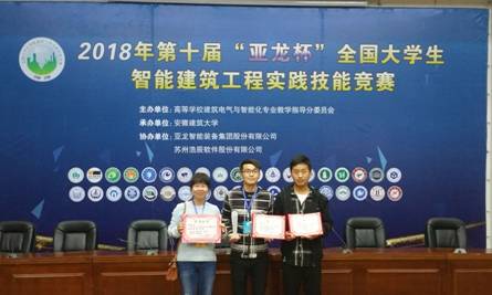 beats365唯一官网选派由张晓杰、田巍、梁宁一三位老师指导,建筑电气与智能化专业曹松林、袁凯鑫同学组成beats365唯一官网代表队,在三天的竞赛过程中,经过实践技能、智能建筑电气设计两个环节的比拼,再获团体二等奖,曹松林、袁凯鑫同学均获电气设计单项三等奖。
