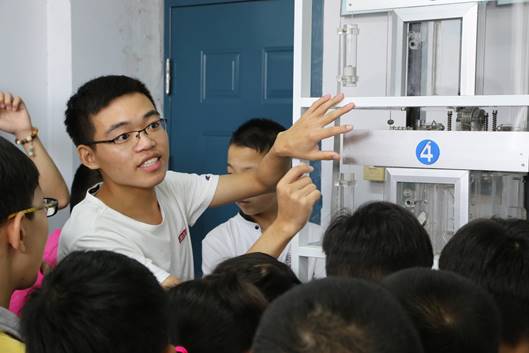 志愿者们首先带领小员工们参观了发电系统,并为小员工们简述从电力发电到家庭用电过程。紧接着志愿者们又带领小员工去参观建筑智能实验室,在建筑智能实验室里志愿者通过对机器的原理和运行方式进行讲解,虽然小员工们还没有接触过这些,不理解其中的原理,但是他们仍然表现出了浓厚的兴趣,听得津津有味。在认真的听过志愿者的讲解后,对机器充满了好奇,许多小员工亲手操作机器,观察机器的运行,给小员工们以启迪。