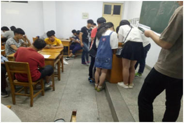 4月27日晚上,决赛正式开赛。比赛刚开始就已经炽热化,第一轮对决首先是1814161与0944161,投影仪上显示成语意思,两队抢答猜出成语,每答对一道得一分。第二轮是听写成语,每写对一个得一分。第三轮是根据成语说出其典故及意思,同样是抢答,每答对一题得三分,回答不完整或有错酌情扣分。最终,一等奖获得者1814161班,二等奖获得者0924161班,三等奖获得者0944161班,至此第一届成语大赛圆满结束。