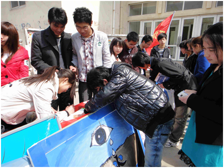 在接近6个小时的活动中,各个同学都尽职尽责,把宣传和讲解都做的有条不紊,相信在同学们的努力下,大家的节水意识一定会有所提高,对保护水资源作出一份贡献。最后在活动结束时,两条宣传条幅上已经写满了密密麻麻的各个活动参加者的签名,从中可以看出工作人员的认真负责,广大同学对节水重要性已经对节水工作的支持。