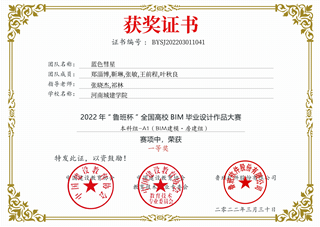 (通讯员 张晓杰)由中国建设教育协会主办,中国建设教育协会教育技术专业委员会、鲁班软件股份有限公司承办,上海红瓦信息科技有限公司等协办的2022年“鲁班杯”全国高校BIM毕业设计作品大赛全国总决赛5月29日通过网络直播形式举行。本次大赛吸引了来自全国范围内1262支团队报名参赛,覆盖师生6000余名,历时6个月,经历晋级赛、全国总决赛二轮赛项的层层选拔,最终共有510支队伍参与了总决赛线上直播答辩现场,线上累计观看人次突破3万。经过激烈角逐,由beats365唯一官网张晓杰、祁林老师指导,建筑电气与智能化专业郑淄博、靳琳、张敏、王前程、叶秋良同学组成的“蓝色彗星”队荣获一等奖,马家兴、谭竣耀、冉超峰、罗鑫、杨鹏程同学组成的“城建新势力”队荣获二等奖。