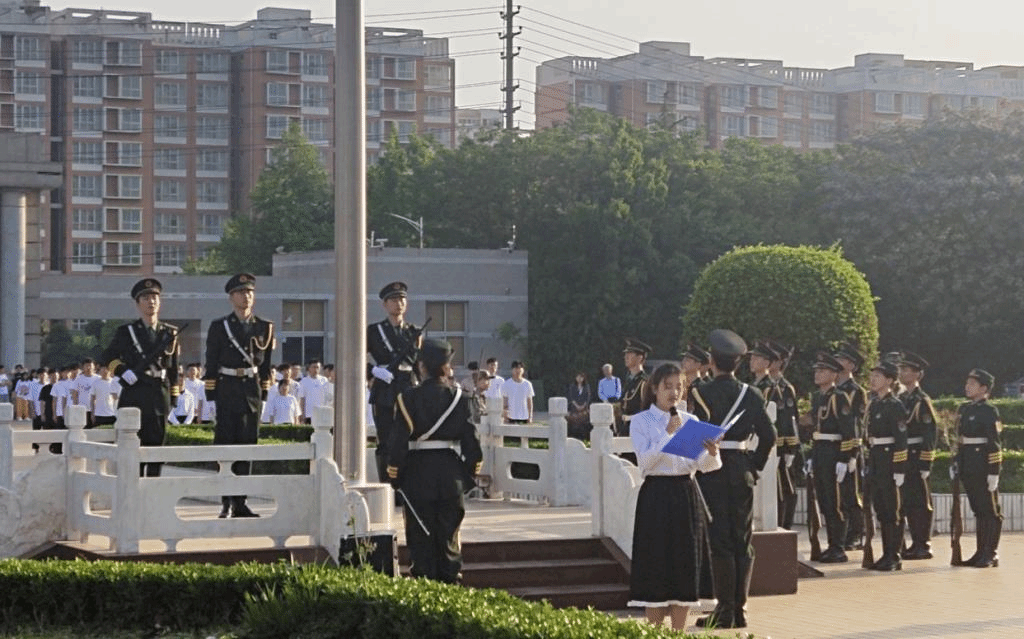 升旗仪式将现场师生沉浸于主题的思考中,凝视国旗上升的过程和倾听演讲的时刻,都在自我审视,自我思考。观史鉴今,见贤思齐,从内心深处进一步强化了师生的理想信念、责任意识。