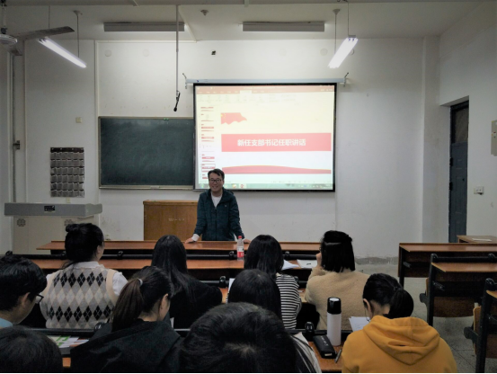 新当选的党支部书记丁世敬老师任职讲话