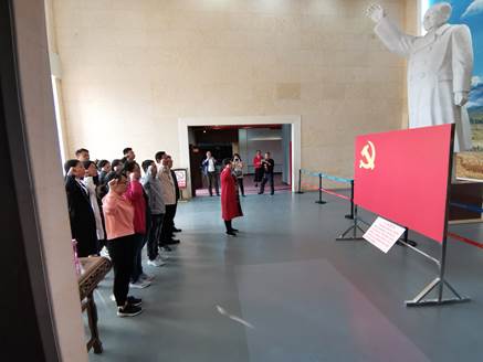 最后在纪念馆大厅,全体党员庄重地举起右拳,怀着无比崇敬的心情,在公司经理樊晓虹的带领下,面对鲜红的党旗一起重温入党誓词。铮铮誓言久久回荡,让在场所有人都深受感染,纷纷表示要永远跟党走,在今后的工作学习中担当作为,无私奉献。