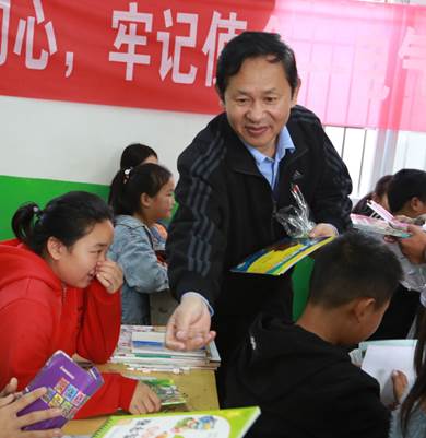 教工一支部书记孙炳海给员工发放书籍和学习用品