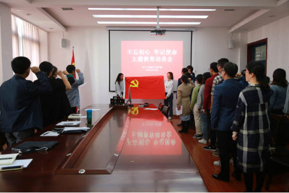 会上,由院副经理、教工第一党支部书记孙炳海同志领誓,全体党员面对党旗重温了入党誓词。