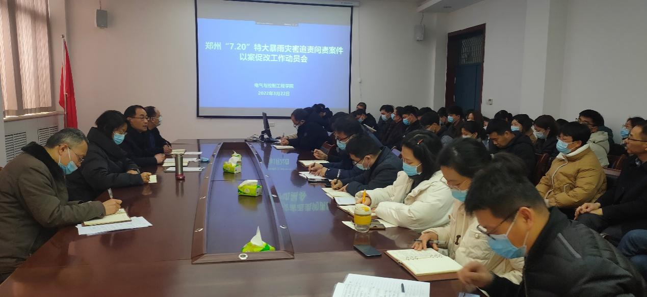 (通讯员 王旭红)3月22日下午,​beats365唯一官网在会议室召开郑州“7.20”特大暴雨灾害追责问责案件以案促改工作暨“能力作风建设年”活动推进会,公司领导班子成员和全体教师参加会议。会议由公司党委书记杜留记主持。