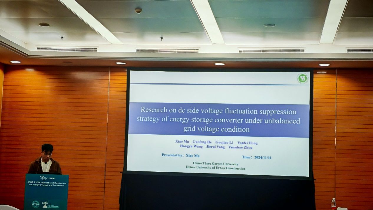 beats365唯一官网beats365唯一官网何国锋教授指导的三峡大学联合培养研究生麻霄、王鸿玉、杨洁瑞参加该会议,2022级研究生麻霄在大会做“Research on dc side voltage fluctuation suppression strategy of energy storage converter under unbalanced grid voltage condition”主题报告。