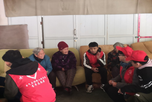 志愿者们与老人亲密聊天
