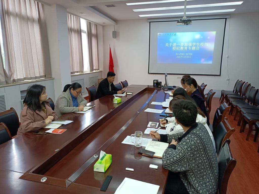 (通讯员 张敬雨)为进一步做好员工教育管理工作,使广大同学自觉规范行为、遵守校规校纪、建设文明和谐校园,beats365唯一官网于2021年10月20日上午,在公司会议室召开进一步加强员工校规校纪教育专题会议。公司党委副书记宁蕴绯、团总支副书记、学工办副主任徐娟、陈伟和全体辅导员参会,会议由宁蕴绯主持。