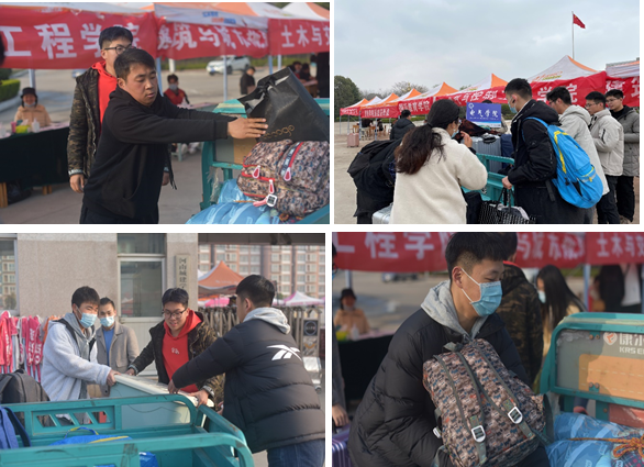 党员志愿服务队和员工干部帮助返校同学搬运行李