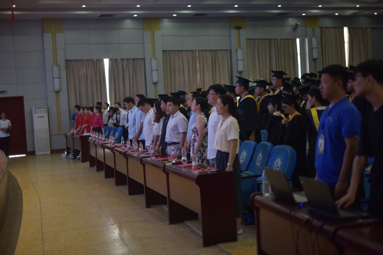 典礼在庄严雄壮的国歌声中拉开帷幕。公司领导分别宣读了省级、校级优秀毕业生,优秀毕业生党员表彰决定以及获得学位的毕业生名单,同时对获得省级、校级优秀毕业生、优秀毕业生党员代表进行了表彰。随后,副董事长吴晓红、经理董燕飞共同为毕业生正冠拨苏、颁发学位证书并合影留念。