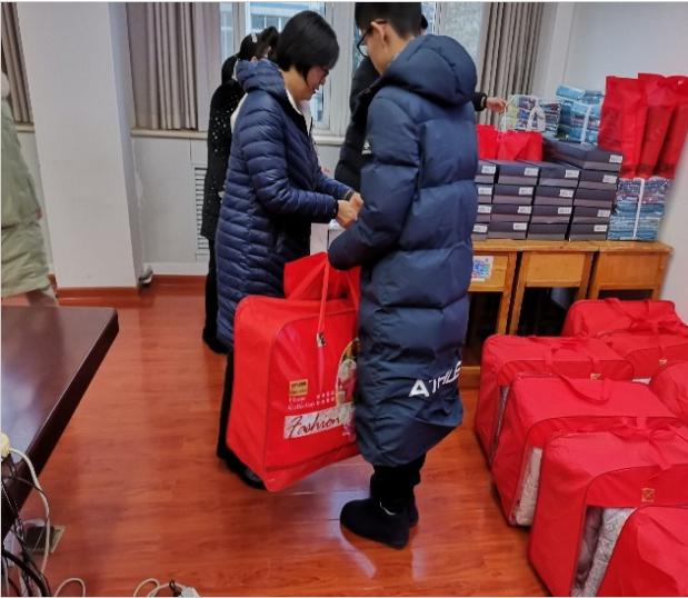公司领导老师为员工发放越冬衣物