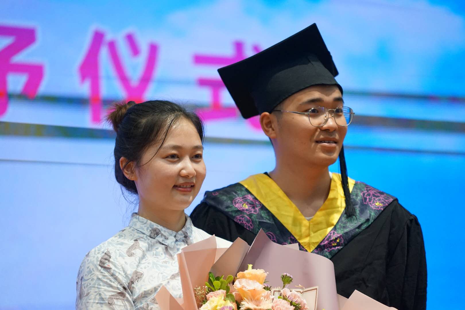 随后,经理樊晓虹为40名毕业生代表正冠拨苏、颁发学位证书并合影留念。党总支副书记宁蕴绯在最后向2020届毕业生提出殷切希望,希望毕业生们在未来的人生道路上能谨记校训,利用专业知识为国家贡献一份自己的力量,志存高远,直面挑战,脚踏实地,勇于奉献。