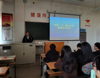 公司以“礼赞二十大,诚信立自身”为主题,组织开展诚信教育主题班会。通过观看诚信主题教育视频、讲述诚信故事,引导同学们坚守诚信信念,建设诚信班级、诚信宿舍、诚信课堂。