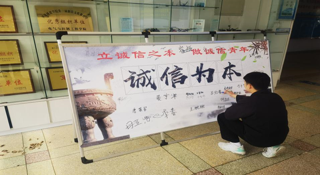 诚实守信,是一切道德之基石,是最根本的道德原则和品质,是公民道德规范的基本要求。公司从3月20日起,将“诚信为本”宣传展板放置公司大厅,宣传诚信教育的同时,开展诚信签名活动。