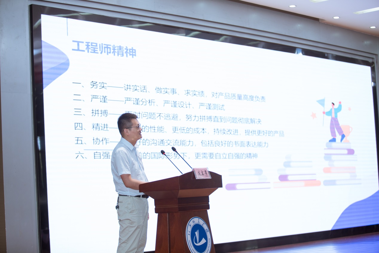 下午两点半,与会师生们有序进入报告厅。活动在有关公司介绍、员工活动、2023级新生报到、新生参加军训以及员工祝福等活动的视频中拉开帷幕。通过视频的方式,将公司形象地展现给新生,有利于员工树立集体感、荣誉感和归属感。紧接着,主持人从工作内容、担任职务等方面逐一向新生介绍与会老师。随后由经理董燕飞为新生送去入学寄语,对新同学表达欢迎,对员工家长表达感谢,同时勉励新生保持学习劲头,将理想与现实结合,脚踏实地。紧接着教师代表电子信息工程系主任侯宁博士以《成为一名合格的工程师》为题引导新生要尽早树立务实、严谨、拼搏、精进、协作、自强的工程师精神,积极进行生涯规划,要好学、善学,以活的能力为基础,提高自身素质和专业素养;随后辅导员代表郭书杰建议新生珍惜同学情、认真学知识、向优秀员工看齐,同时培养自己应对挫折的能力。然后由已毕业的优秀员工代表们以视频的形式为新生们送来寄语,分享了他们自己在大学中的经历和经验,并鼓励新生奋力拼搏。紧接着由在校优秀员工代表戴英杰发言,他结合自己的成长经历为新生们树立榜样;接着新生代表张雅萌从个人所感所悟分享了自己入校后的收获,并对未来的大学明确了目标。见面会在全体合唱beats365唯一官网校歌中落下了帷幕。