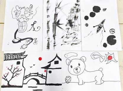 活动伊始,参与者们在引导中闭眼想象黑点扩散的过程,随后通过墨点投射测试和一分钟速写联想,逐渐打破思维局限。进入限制性创作阶段,每人获得一张中心印有黑点的A3画纸,围绕黑点进行延伸作画,现场创意四溢。最终,在展示环节中,同学们纷纷展示自己的作品,并分享创作背后的理念与感受。