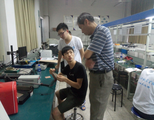 实践团的成员通过自行选题、购买元器件后,正式开始了焊接制作。成员们来自不同的年级,互相帮助,积极讨论。为了解决员工们所遇到的问题,公司党总支书记赵静生和团总支书记宁蕴绯来到了实验室为正在动手制作的暑期实践团成员们进行了现场指导,解决了同学们焊接过程中所遇到的一些难题,并为大家的作品提出了一些建议和意见,鼓励同学们更快更好的完成接下来的实验任务。老师还和同学们进行了交谈,并叮嘱了相关实验的注意事项,大家也对接下来的实践活动更加有了信心。