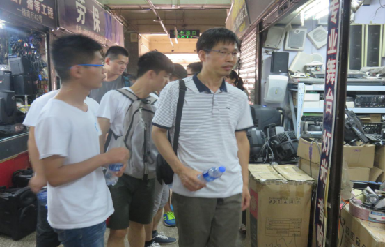 郑州中州商场处于郑州市物流聚集地、交通便利,地理位置得天独厚,具有成熟批发市场的诸多优势,主要经营各种家电、电子、音响工程等小商品。徐安峰老师先是给同学们大致介绍了各楼层的经营范围,简单的介绍了所见到的商品的用途并将这些东西和课本相连。同学们认真听讲并作了记录。随后,老师将同学们分成小组,按照此前选定的课题和确定的原件购置清单购置元器件。在购置过程中同学们既学习了更多的元件知识,也掌握了元器件的市场价值,都表示大有收获。