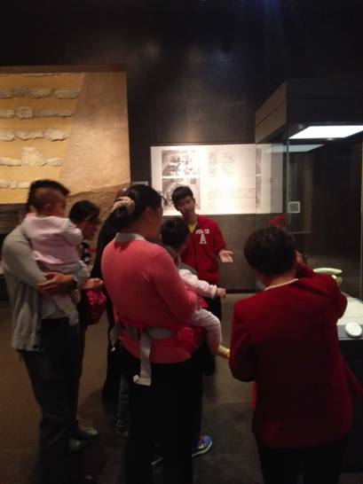 到达市博物馆后,博物馆工作人员交代了日常注意事项,之后大家来到各自展厅等待着游客的来临。游客络绎到达后,负责大厅工作的志愿者先为他们介绍博物馆展区基本状况。展厅志愿者经过充分的准备,不仅详细介绍了所在区的历史文物,而且一一解答了游客所提出的问题。此外志愿者还准备了一些相关文物的奇闻异事,大大提高了游客的兴趣。志愿者在与游客们互相交流对文物的看法中锻炼了自己的表达能力,游客露出的满意笑容是对大家最好的肯定。