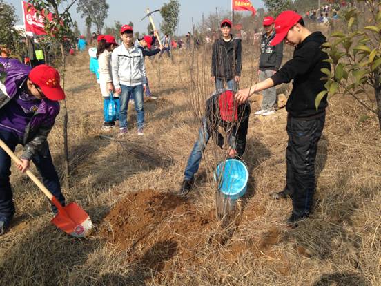 上午7点,志愿者在公司西门集合,乘车来到山顶公园。在领取树苗,合理分配好任务后,志愿者在山顶公园的山脚下荒芜的空地上,种下一颗一颗带着绿色梦想的树苗,给刚刚到来的春天又添了一丝春意。在植树的过程中,受到了河南电视台的采访,接受采访的志愿者表示:我们要用实际的行动实现绿色城市,环保家园的理念,用我们微小的行动为我们生活的环境做出一份贡献,带动更多的人加入到环保行动中来。
