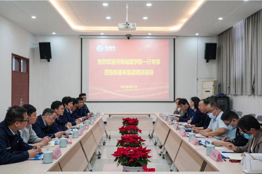 铁福来装备制造股份有限公司董事长赵玉凤等领导热情接待。首先,工程师武总带领大家参观了集团公司的生产车间,重点介绍了企业龙头产品“煤矿用履带式全液压定向钻机”、“煤矿用履带式全液压坑道钻机”的技术特点、生产工艺等。接着,赵总详细介绍了集团的主要产品、业务范围以及科技研发情况。董燕飞详细介绍了公司的特色专业、博士团队的研究方向以及在研与已结项的科研项目,何国锋及各参会博士共同探索了双方的合作契机,初步确定了双方的合作意愿和合作课题,双方今后将共同围绕PLC控制、煤矿井下井上的通信以及智能控制等方向展开,愿意共同为平顶山区域的经济发展贡献一份力量。最后,铁福来装备制造股份有限公司人力资源部赵经理介绍了集团的人才需求,表示集团可为公司电气工程及其自动化专业、自动化专业提供实习和就业岗位,希望双方共建就业、实习基地。电气工程系主任刘豪和自动化系主任梁成武与其深入交流了人才培养、员工发展等公司产品问题。