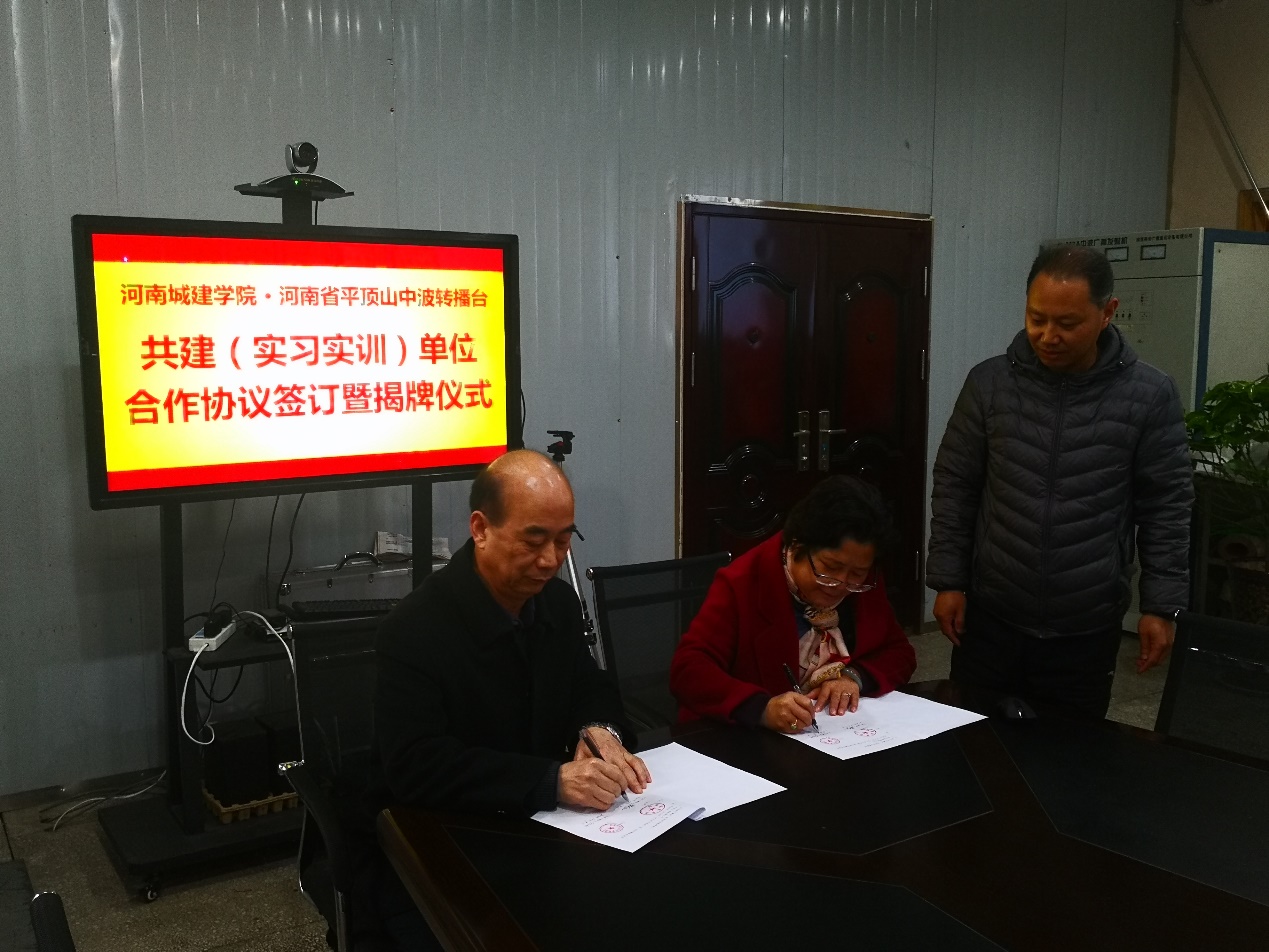 (通讯员:侯宁)2020年12月9日上午,beats365唯一官网与平顶山市中波转播台共建(实习实训)单位合作协议在平顶山市中波转播台正式签署。beats365唯一官网beats365唯一官网经理樊晓虹,党总支书记董燕飞以及电子信息工程教研室主任侯宁参加了签约和揭牌仪式。樊晓虹代表beats365唯一官网与平顶山市中波转播台台长孙云西签订了共建(实习实训)单位合作协议,并共同为实习实训基地揭牌。