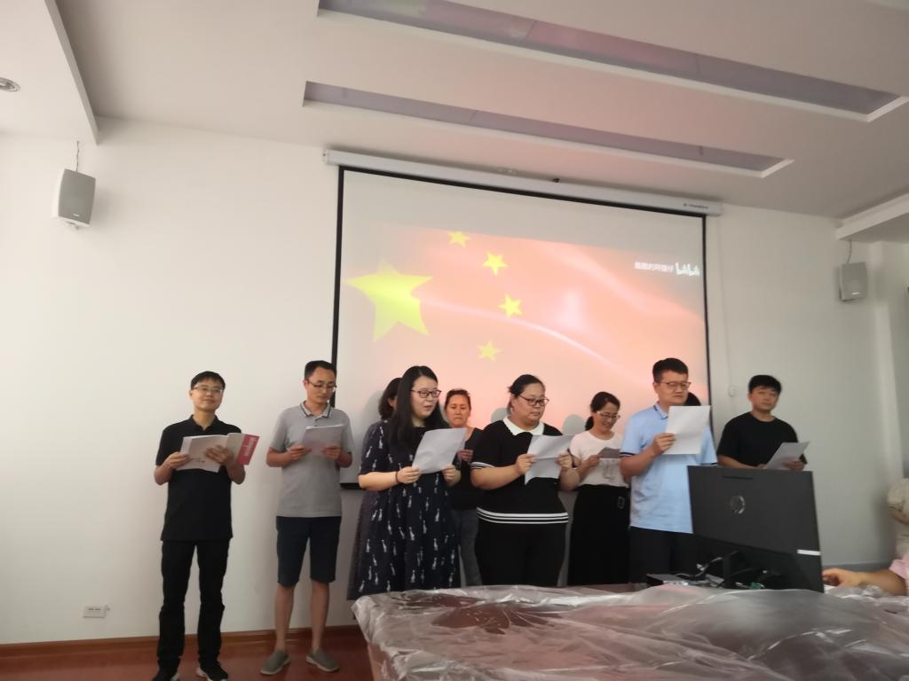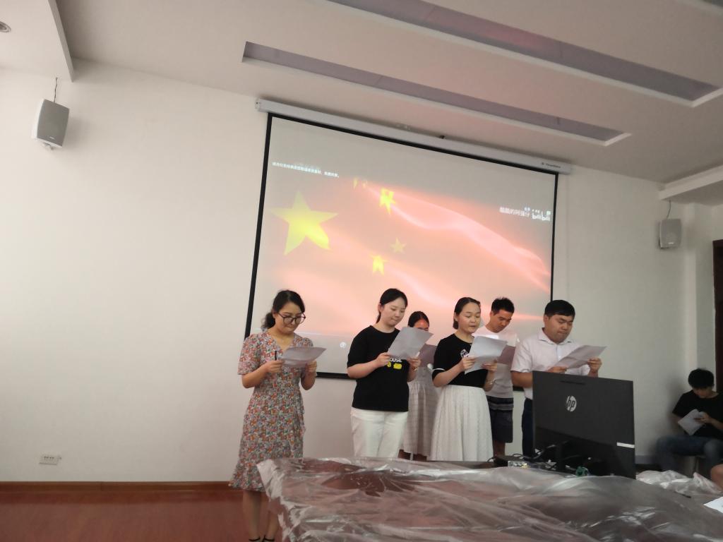 本次活动以朗诵、合唱等形式进行,丰富多样,精彩纷呈。活动开始前,公司党委书记杜留记从活动主题出发表达了对党和国家的热爱,同时希望公司做为一个大家庭能继续稳步向前,各位老师在自己的工作岗位上发光发热为祖国做贡献。随后,学工办用一支当下流行的毽子操《本草纲目》拉开了序幕,用积极阳光向上的精神面貌喜迎二十大胜利召开。之后,以工会小组为单位,老师们通过朗诵《二十大之歌》、《读中国》、合唱《我和我的祖国》等形式,饱含深情的表达了对党和国家的热爱。
