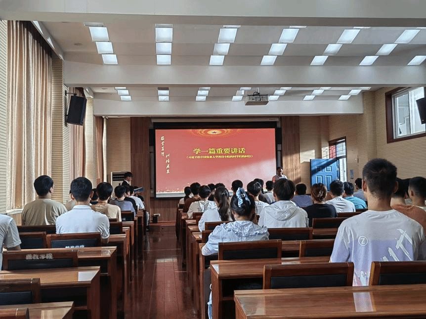 本次文化讲堂共有六个环节:学一篇重要讲话、看一部视频短片、讲一个身边故事、作一次感想交流、唱一首优秀歌曲以及送一份祝福礼物。活动开始由党委书记杜留记领学了习近平总书记给中国农业大学科技小院的同学们的回信精神。杜留记表示,习近平总书记的重要回信充分阐明了新时代中国青年该有的“自找苦吃”的“精气神”,表达了对新时代青年的无限关爱与热切期待,是新时代青年成长成才的行动指南,广大青年要以更加奋发有为的精神状态和一往无前的奋斗姿态,志存高远、脚踏实地,让青春在全面建设社会主义现代化国家的火热实践中绽放绚丽之花。接着观看了《无奋斗 不青春》短片,激励大家应自觉把个人的理想追求融入国家和民族的事业中,勇做走在时代前列的奋进者、开拓者;随后由2023届毕业生张博源“以身边人讲身边事”的形式,讲述身边同学是如何规划自己的老员工活,鼓励同学们应在大学期间根据自身情况,明确目标,科学规划,脚踏实地;随后在“作一次感想交流”环节中,由教师代表辅导员陈伟讲述他的抗疫经历和感悟,以及员工代表2023届毕业生周梦雨讲述自己的老员工活和感悟,激励同学们树立志向、践行梦想,练就本领,以实际行动践行青年使命与担当,为党和人民贡献青春力量;活动最后由员工代表演唱歌曲《少年中国说》,弘扬了民族精神,激发了师生的爱国情怀及拼搏斗志,由杜留记为优秀员工代表颁发礼品以示鼓励。伴随着在场全体师生合唱校歌的嘹亮歌声,本次活动圆满结束。